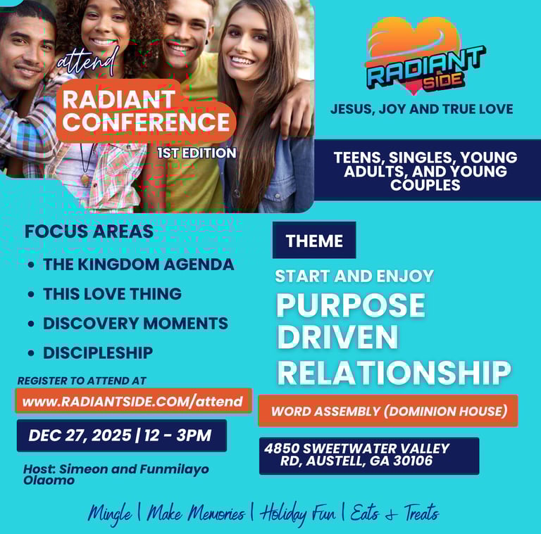 Our Radiant Conference brings together teens, young adults, singles, and newly‑weds to empower them as they begin thinking about, building, and nurturing marital relationship. We see this stage as a pivotal moment, so we’ve gathered resources to help participants prepare for what can be a life‑changing journey.